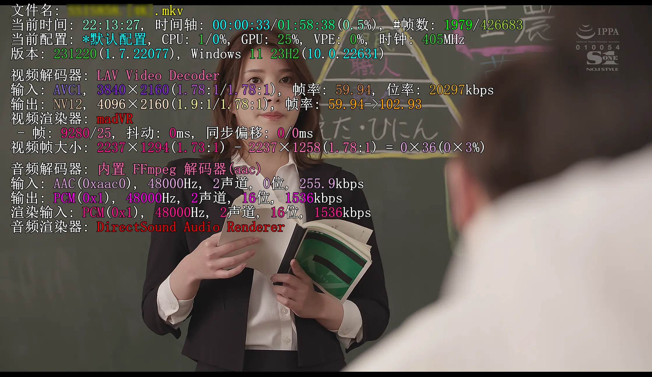 按 Tab 键即可看视频的解码和渲染是不是 LAV 和 MADVR,如果是的话就说明设置正确了。同时帧率也有显著提升。